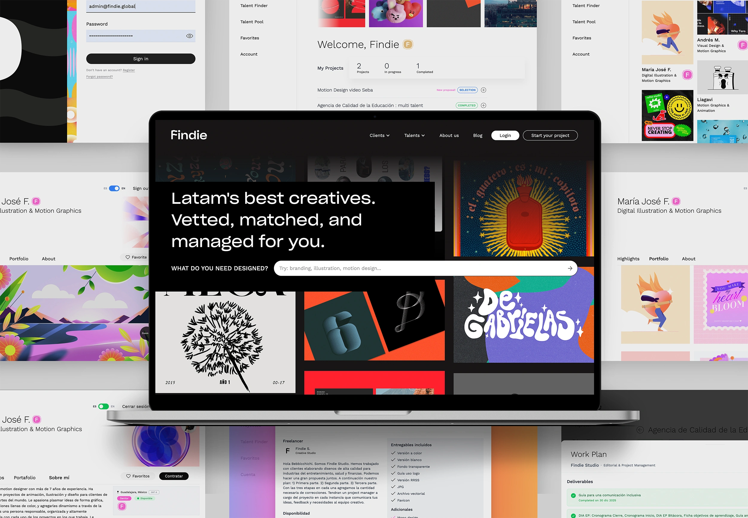 Findie Studio is the all in one creative service you hire when you want the work done without managing five different freelancers. We build your project with a curated team from Latin America, led by a Creative Account Manager who handles planning, quality control and delivery. Design, branding, web and content, all in one place, fast and consistent.